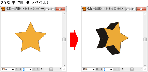 オブジェクトやテキストなど、2D アートワークのパスを押し出したり回転することにより、編集可能な 3D オブジェクトを簡単に作成できます。照明を自由に配置してオブジェクトに陰影をつけたり、オブジェクトの表面にラスター画像やベクトルアートワークを貼り付けて、パッケージのモックアップの作成を簡単に行うことができます。また、プレビューで確認しながら 3D オブジェクトを作成することができます。